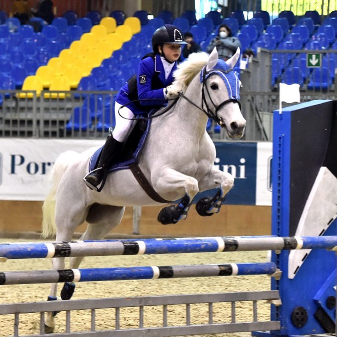 Sara Bertoglio nata il 13/07/2009, vive in provincia di Cremona. Va a cavallo da sempre perché la mamma e lo zio hanno un maneggio (Centro Equestre “Il Violino”). Ha iniziato a fare gare all’età di 8 anni con un pony di nome Mirabeau De La Mouche (Mago per gli amici). Nel 2020 ha conseguito il Brevetto e adesso monta Grey, pony francese con la quale sta effettuando le categorie B 90 e B 100. Quest’anno parteciperà per la prima volta al Progetto Sport. Le passioni di Sara sono I CAVALLI , i cani e… Draco Malfoy!